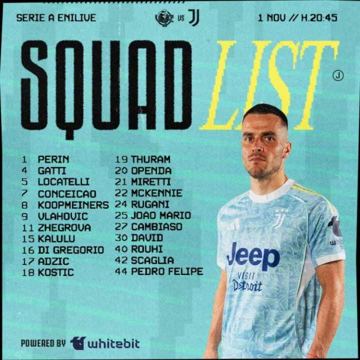 尤文联赛大名单: DV9、伊尔迪兹入选, 卡卢卢、凯夫伦-图拉姆在列